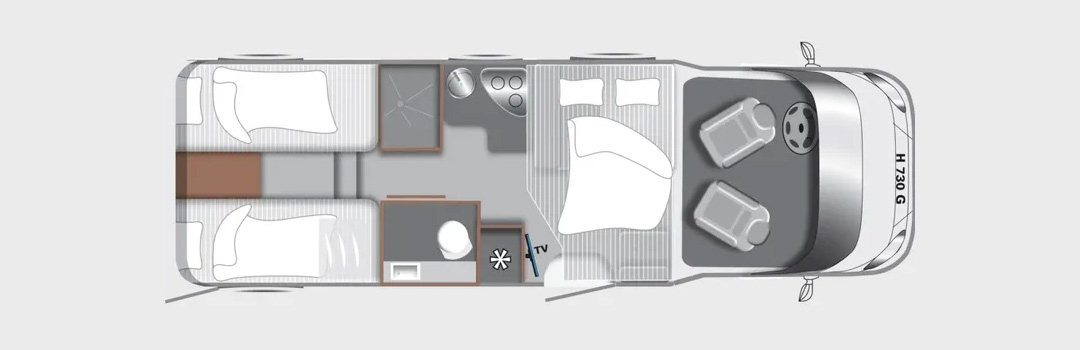 Der Tourer Lift H 730 G ist ein schickes Neufahrzeug mit einigen Highlights. Sowohl zu zweit als auch für die Familie mit 2 Kindern gut geeignet. Das Fahrzeug zeichnet sich durch eine relativ hohe Zuladung, sowie einen übersichtlichen Grundriss aus. Die Einzelbetten im Heck können zu einem großen Doppelbett (ca. 200 x 200cm) umgebaut werden. Das Hubbett verschwindet komplett in der Decke, sodass die Stehhöhe im Innenraum nicht beeinträchtigt wird (Herstellerangabe: max 198 cm).